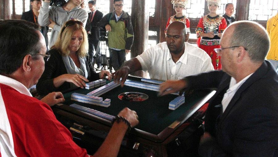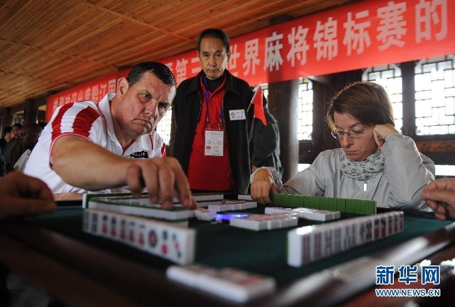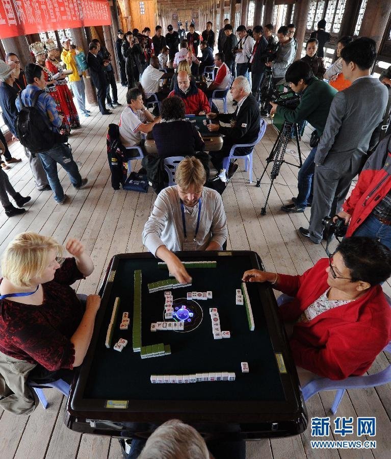 10月28日,在重庆黔江举行的“第三届世界麻将锦标赛”正式拉开战幕。本次比赛为期四天,共有来自中国、美国、德国、丹麦等20个國镓和地区的300多名选手参赛。比赛执行国际《麻将竞赛规则》及相关规定,将决出个人、队伍和团体名次。世界麻将锦标赛是由世界麻将组织主办的全球范围内的竞技麻将赛事。新华社记者李健摄