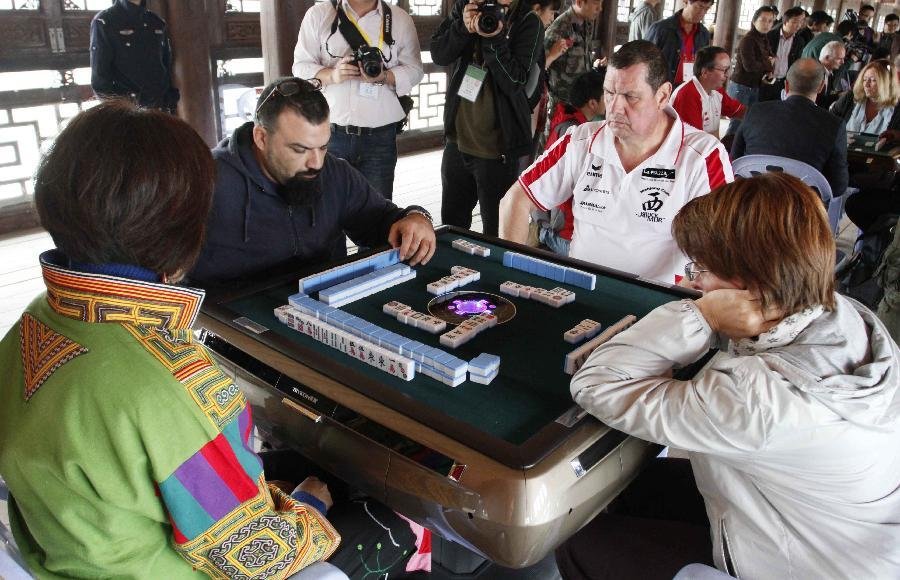 在国际麻将赛事上,可以听到夹杂着外国口音的普通话“吃”、“碰”、“杠”、“和”。焦灵花说,中外朋友打国际标准麻将都一样,不存在交流障碍。