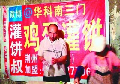 本报讯(记者黄莹 实习生孙志鹏)在华中科技大学门口摆摊卖鸡蛋灌饼的大叔,因在微博上晒原料和做法走红网络。这位“饼叔”最近决定公开招募学徒。他昨日透露,甚至连沈阳酒店的老板都开车来汉取经。他计划在华中科大附近开一家以鸡蛋灌饼为主打的快餐店。“再加入武汉本地的小吃、饮品,打造一个‘汉版肯德基’。”