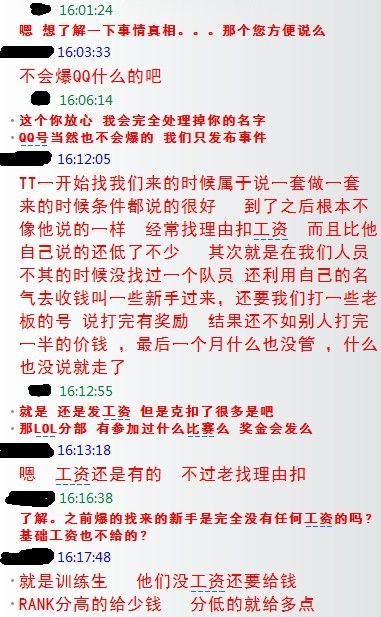 上面写的只是星际2部门的一些轻如牛毛的小事,至于LOL部门才是遭的最重的,该经理招人来做职业选手,以练习生身份不发工资,然后跟老板报职业选手该有的工资。有些人没钱拿,甚至是自己贴钱来的,大致内容基本与星际2部门如出一辙。