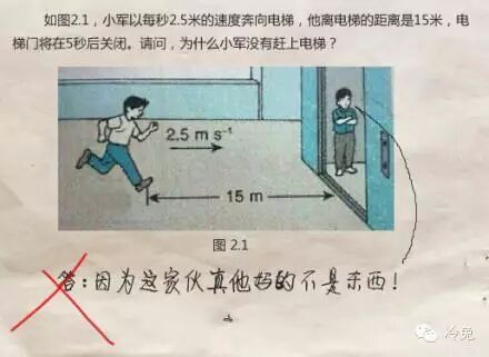 这道题对学生有严重误导,电梯绝对不能跑过去冲进去,而要等它停稳了快速进入。