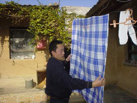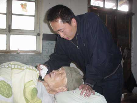 房间收拾得干净整洁,闻不到任何异味。躺在炕上的老人捂着厚厚的棉被,神情安详。除了家族人,谁都想不到,这是一个没有女主人的家,一点一滴的事情,都靠一个大小伙子去细心料理。眼前的王映军显得精明利落,里里外外都是一把手,说话、待人,都显得大方而有理有节。